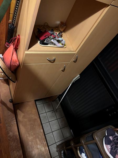 古く汚れてきた玄関の段にリメイクシートを貼り明るく綺麗に。余ったシートで、靴箱の引き出しや飾り棚も貼りました。履かなくなった靴も8足処分し、靴箱に新しいシートを敷き直し、外に出ていたカッパや麦わら帽子も収納。山盛りの鍵はサイドにワイヤーラックを付け掛けて、スッキリしました。GWに子供達が帰って来て驚いてくれるか楽しみです。