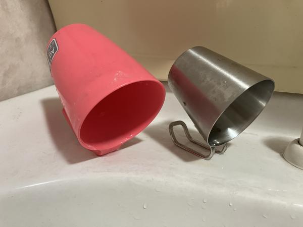 水がよく切れるうがいカップを購入しました。以前から、プラスチック製の物も使っています。抗菌仕様ですが、汚れが落ちにくい気がします。