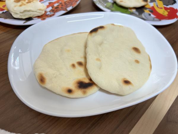 コープで無印のナンを見つけました!普段からコープでトースターで焼くだけのナンは購入していたので、今回は自分たちで作ってみようと息子が提案。水と塩があれば簡単にフライパンで作れました! 出来立てのナンは素朴で優しいお味!息子は中にチーズを入れて満足いくできになりました。日曜日の楽しいランチになりました。 翌日学校で先生にも報告していたようです。良い日になりました。