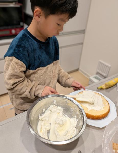 息子が「ホールケーキを切らずに食べてみたい。盛り付けも自分でしたい」というので、バレンタインに一緒にケーキをつくりました。結局一度にそんなに量は食べれませんでしたが、楽しかったようです。