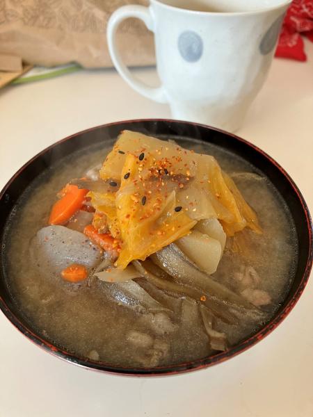 旦那の母の実家の金沢では、とりやさい味噌で鍋をしたり、豚汁を作るそうです。なので、私達もやってみようか!ということで、旦那と一緒にとりやさい味噌豚汁を作りました。具沢山にして、栄養満点にしました。子どもも食べてくれて、とてもおいしかったです。 旦那のばぁばにも、食べてもらいたいなぁと思いました(^^)