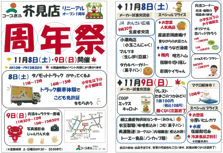 日頃のご愛顧に感謝を込めて、芥見店ではリニューアルオープン1周年を記念した「周年祭」を開催いたします。ご家族皆さまで楽しめるイベントやお得な商品が盛りだくさん!ぜひご来店ください!