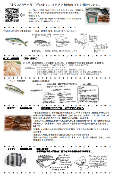 とれたての新鮮なお魚を、家庭でも上手にさばいて調理ができるように、お魚のさばき方と簡単なレシピを入れてあります。美味しく召し上がる手伝いになれば幸いです。