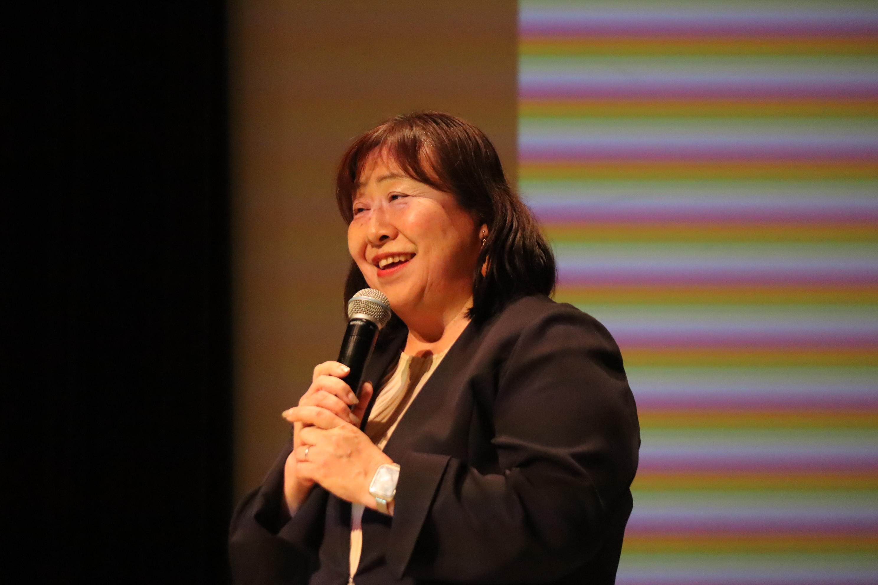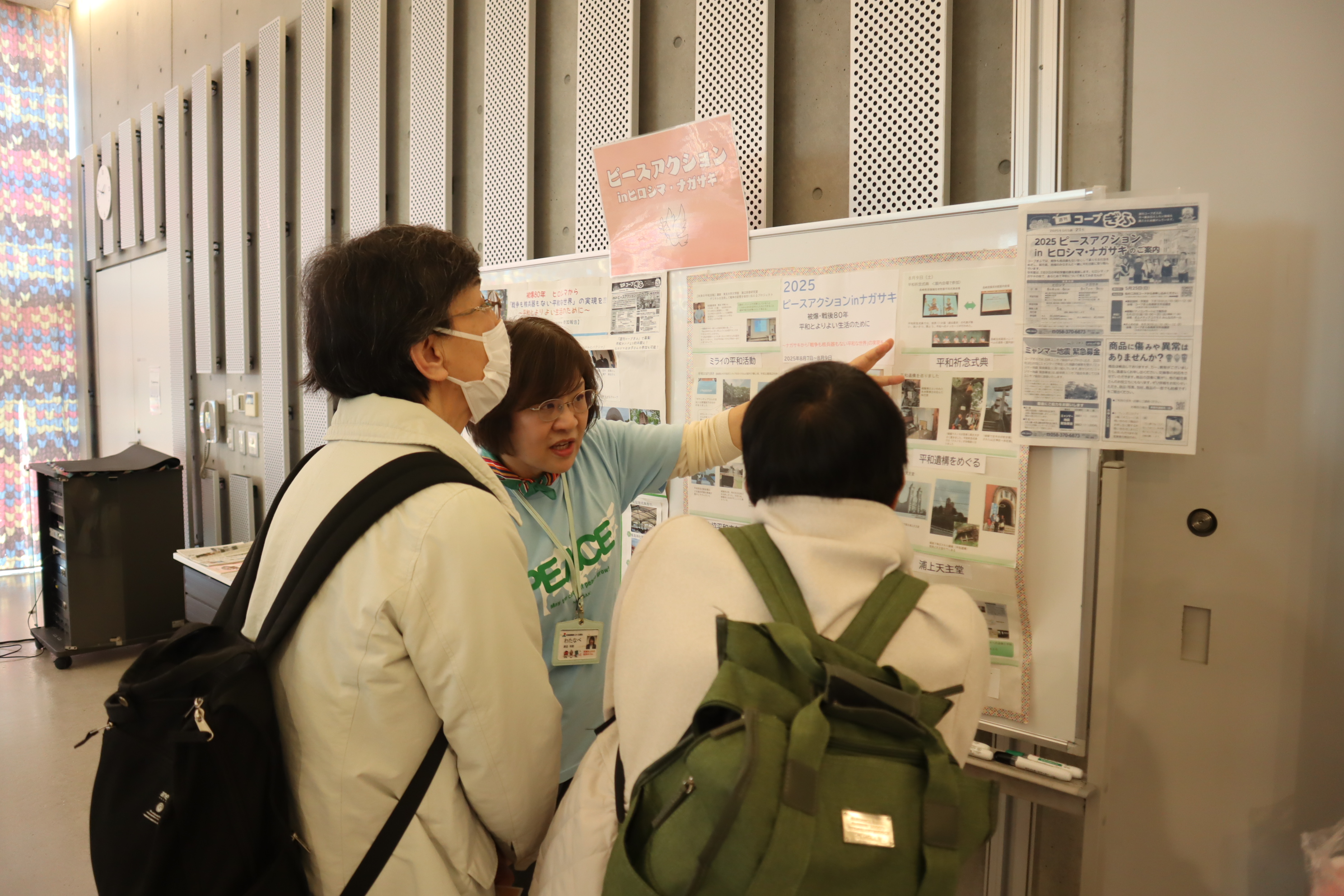 最初に堀部副理事長から、「食品を扱うコープぎふがどうして平和の企画を開催するか、不思議に思う方もいるかもしれません。コープぎふの平和の取り組みは、家族や子どもを想う組合員の皆さんの声から始まりました。家族みんなで食卓を囲んで団らんするには平和な日常が必要不可欠です。被爆・戦後80年である年に、今一度平和について考えていただければと思います」とあいさつがありました。