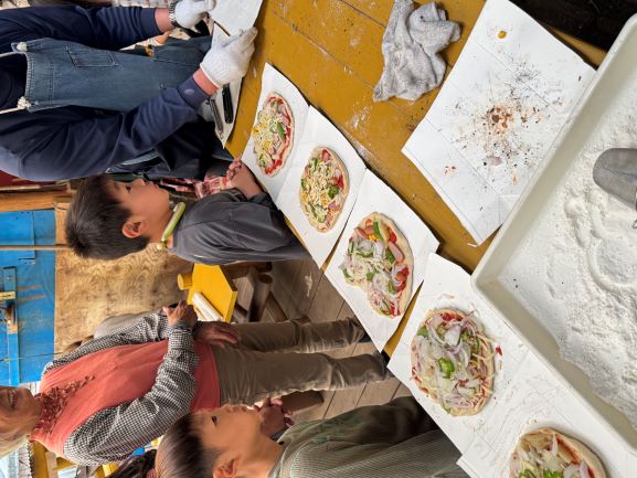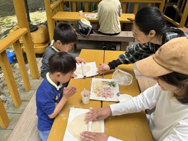 山登りで、少しお腹がすいたら・・・家族にわかれていよいよピザ作り!