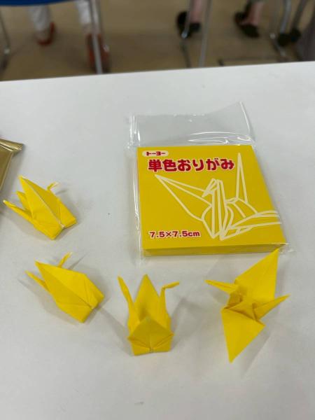 お話を聞いた後に、平和の願いを込めながら鶴を折りました。
