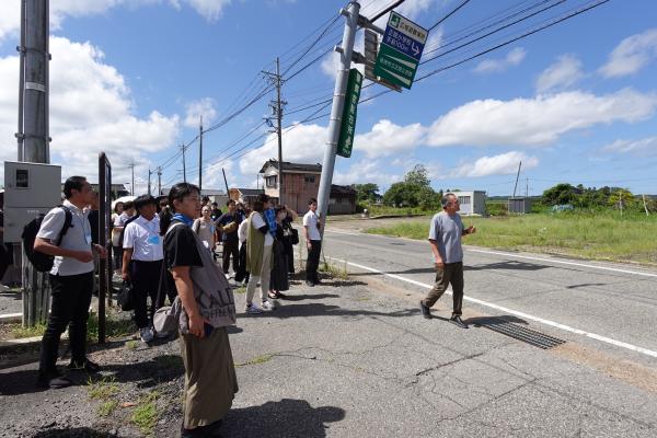 上下に感じるバスの揺れ、斜めになっている電柱、倒壊したままの家屋から未だ深く残る被災地の被害の爪痕を感じました。また、先日の豪雨の被害から、当初のルートを通る事が出来ず迂回せざるを得ない、ということも起こりました。