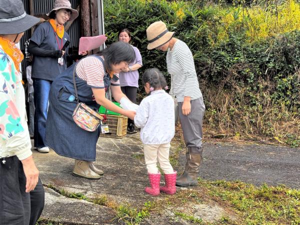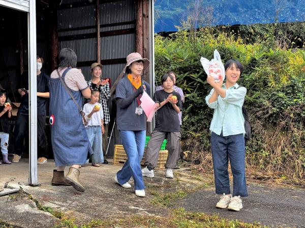 りんご狩りの他に、生産者のお話、クイズラリー、りんごの重さ当てクイズをおこないました。