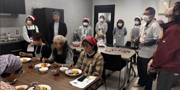 2025年12月5日(金)、JAぎふ稲羽支店の調理室にて、毎年恒例の「クリスマスクッキング」を開催しました。今回はJAぎふさんとの初めての共催で、できたばかりの綺麗な施設を使わせていただき、参加者のみなさんと一緒に楽しい時間を過ごしました。