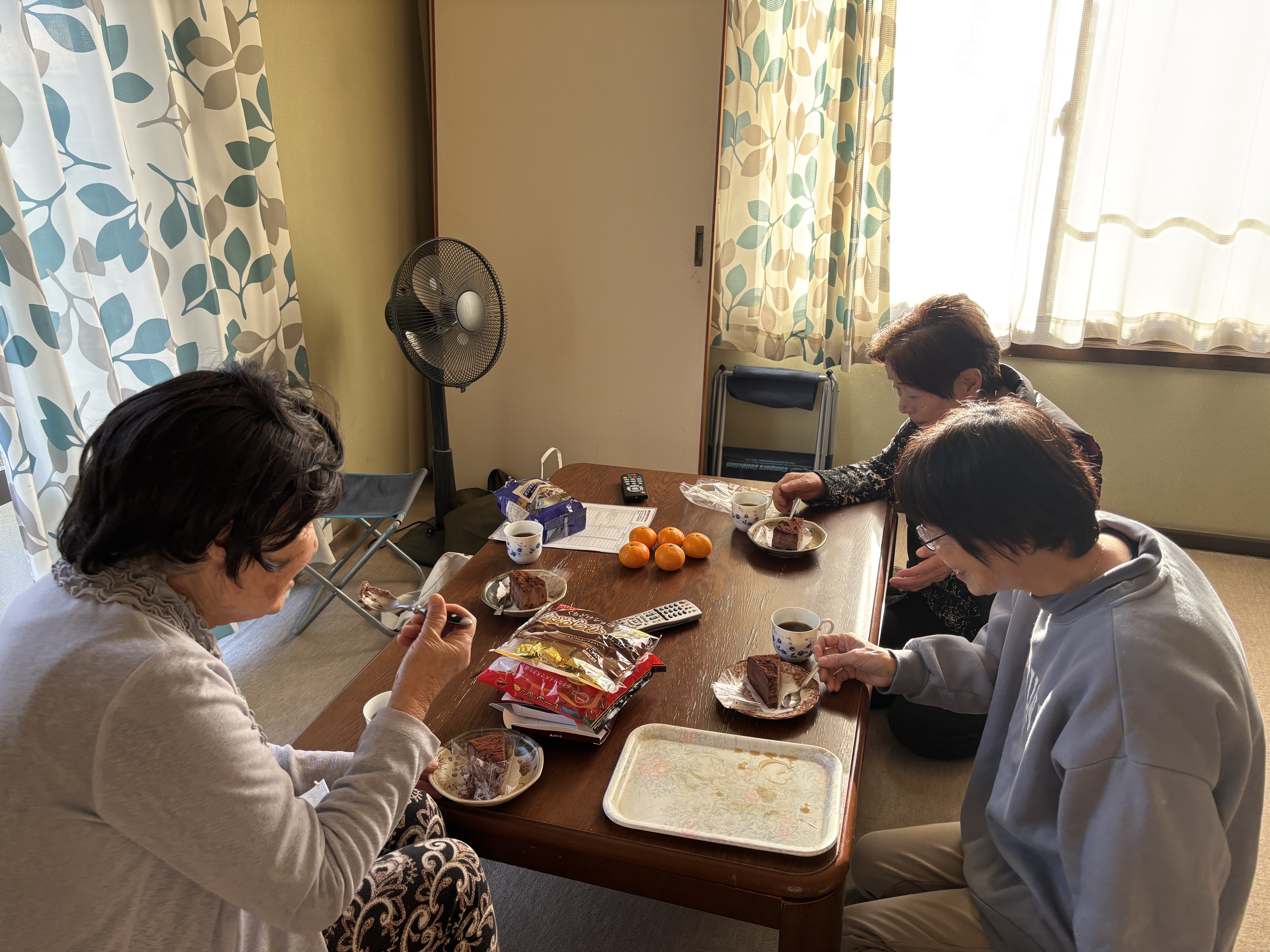 介護職の方がいたので認知症予防の脳トレで盛り上がりました。私自身親の介護を体験したので、この先介護する時の注意点、介護サービスの受け方。自分が介護される側になった時の為に、など皆んなで話しました。皆さんが無料で戴くのは、と恐縮されていたので、おしゃべりパーティーの趣旨や、生協の利用方法など話しました。コーヒーもケーキも美味しいと好評でした。●参加人数: 大人7名 子ども0名●開催日: 2025年11月28日(金)