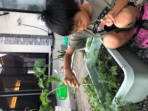 カラフルにんじんのタネを買って撒いてみました。 待ちきれず、抜いてみたらこのにんじんは白色でした! にんじんが何色になるかの楽しみもあり、こどもは大喜びです。 はやくもっと大きくなってもらいたいです。 夏野菜がひと段落したら、もう少し広い場所に、まだまだにんじんのタネをまきたいと思います。