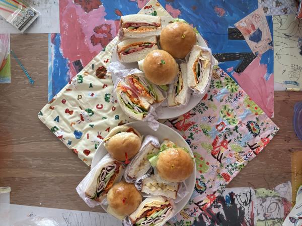 去年から通い始めたパン教室で教えて貰った、映えサンドイッチを、自分で焼いた食パンとバンズで、孫達と一緒に作りました。子供達も楽しそうに好きな具材選んで作ってました。