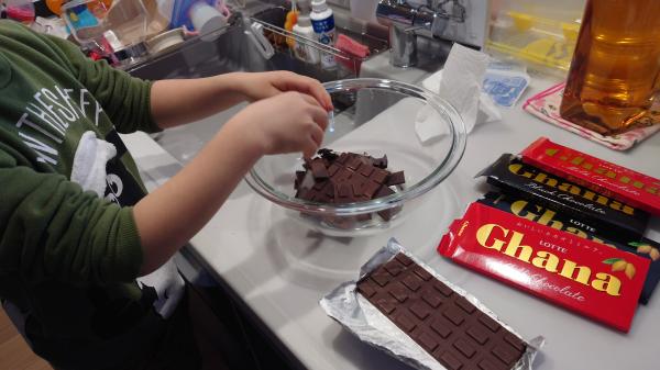 最近、5歳の息子が料理に興味を持ち、よくお手伝いしてくれるようになりました。お菓子作りはまだデビューしておらず、バレンタインデーということもあり、大好きなチョコレートを使って一緒にガトーショコラを作りました。お菓子作りが楽しかったこと、自分でも作れたんだと自信にも繋がり満足だったようです。 家族みんなで美味しくいただきました。