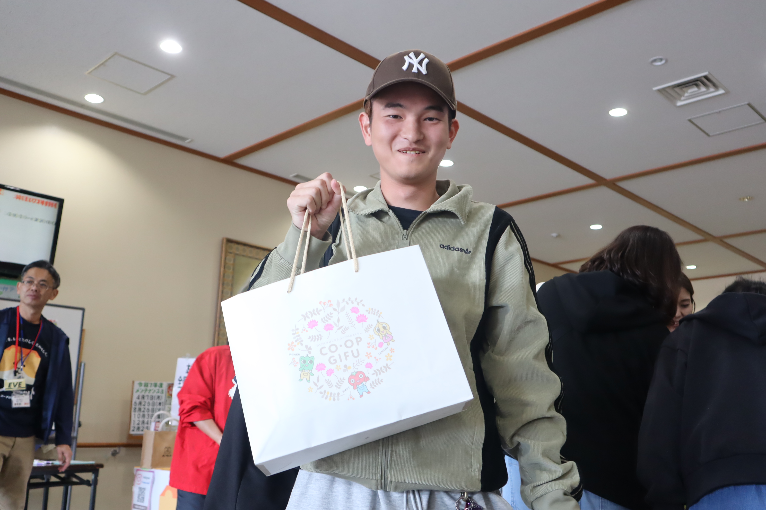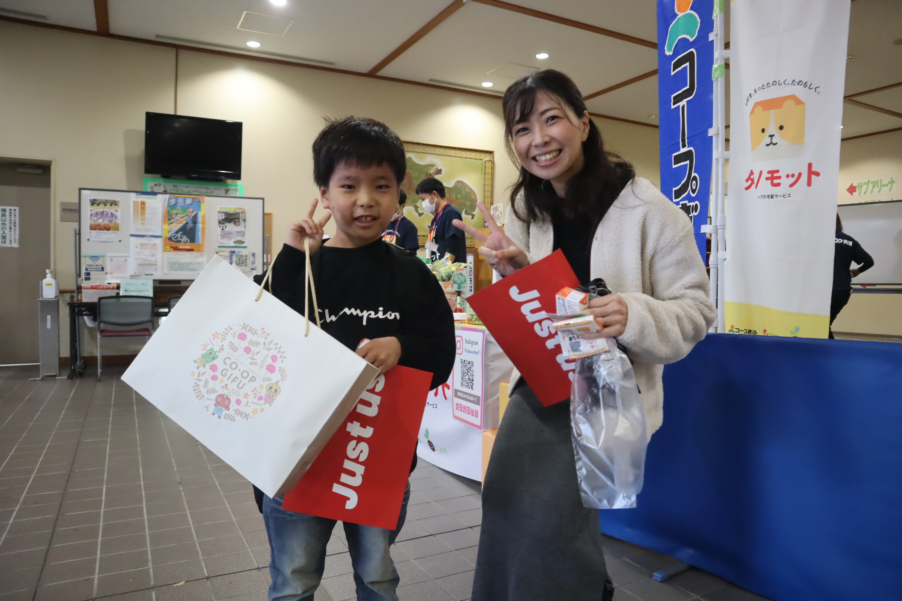 会場内ではブースを設け、ガラガラ抽選会を行いました。たくさんの方に参加いただき、当選された方は「嬉しい!!」「これ美味しいよね、私大好き!」と喜んでくださいました。当たった商品と一緒に素敵な笑顔をたくさんいただきました。