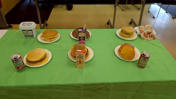 尾張製粉さんのご協力のもと、ジュースを使ったホットケーキ作りを楽しみました。ホットケーキミックスの特徴や製粉のこだわりについても教えていただきました。