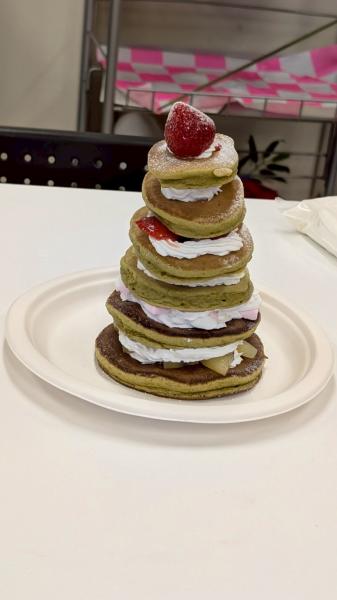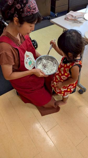 それぞれのジュースで焼き上がりの色や味が変わり、見た目も楽しく、味もやさしい仕上がりになりました。クリスマスツリー型のホットケーキも作り、見た目もかわいくできました!