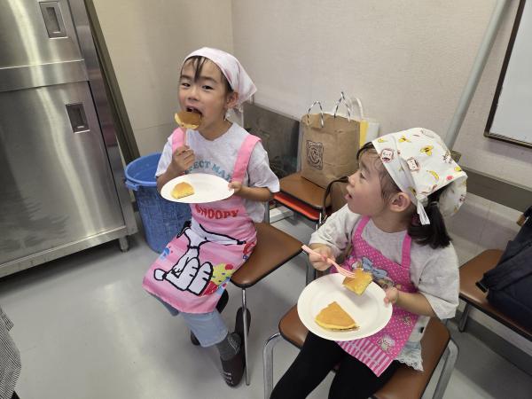 初めて作るお子さんはホットケーキが焼き上がった時、得意げな様子で、自分で焼いたホットケーキを「おいしい!」といいながら食べていました。
