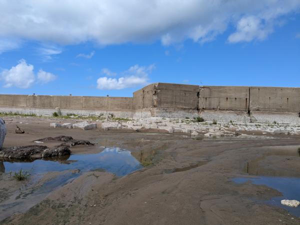 海岸隆起が起こった黒島海岸。写真は震災前は海だった場所で、震災の影響で4メートルも海岸が隆起していることがわかります。