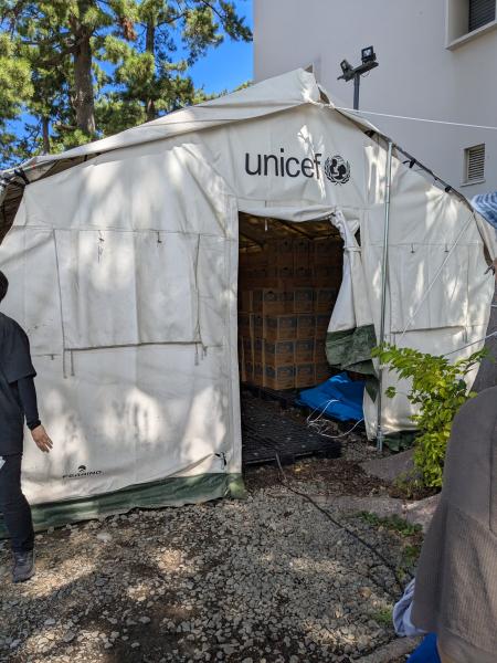 輪島市の物資支援の拠点となる重蔵神社には、多くの支援物資が保管され、中にはコープの商品も。