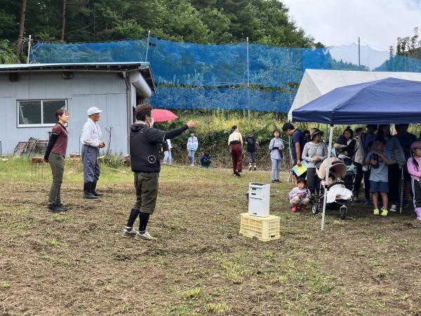 りんご狩りの他に、生産者のお話、クイズラリー、りんごの重さ当てクイズをおこないました。