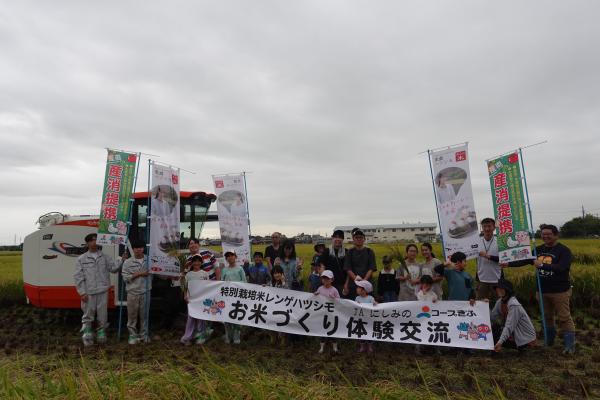 10月18日(土)、JAにしみのさんと全農パールライスさんご協力のもと、「特別栽培米レンゲハツシモ稲刈り体験」を開催しました。