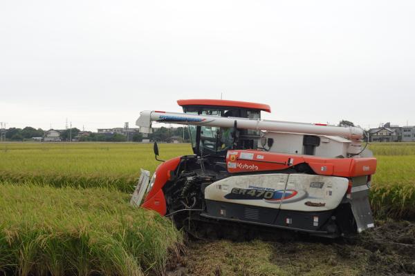 西濃支所近くの田んぼで、手刈りによる稲刈り体験や、機械による刈り取りの見学をおこないました。