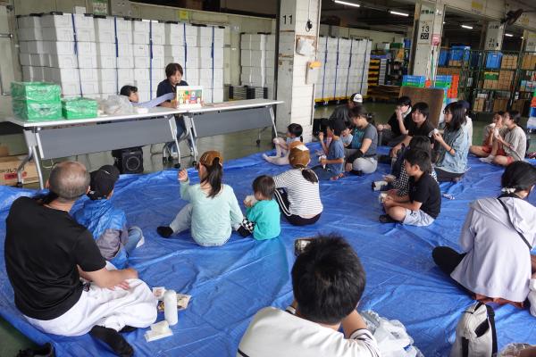 稲刈り体験の後には、炊きたてのレンゲハツシモを使ったおにぎりがふるまわれ、紙芝居の上演もおこなわれました。