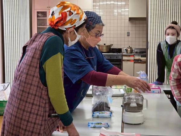 小坂町で五平餅を販売されている講師の方をお招きし、えごまのたれの作り方から焼き方まで丁寧に教えていただきました。
