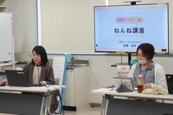 乳幼児の睡眠サイクルの特徴や、ねんねに最適な寝室環境について講義をいただき、